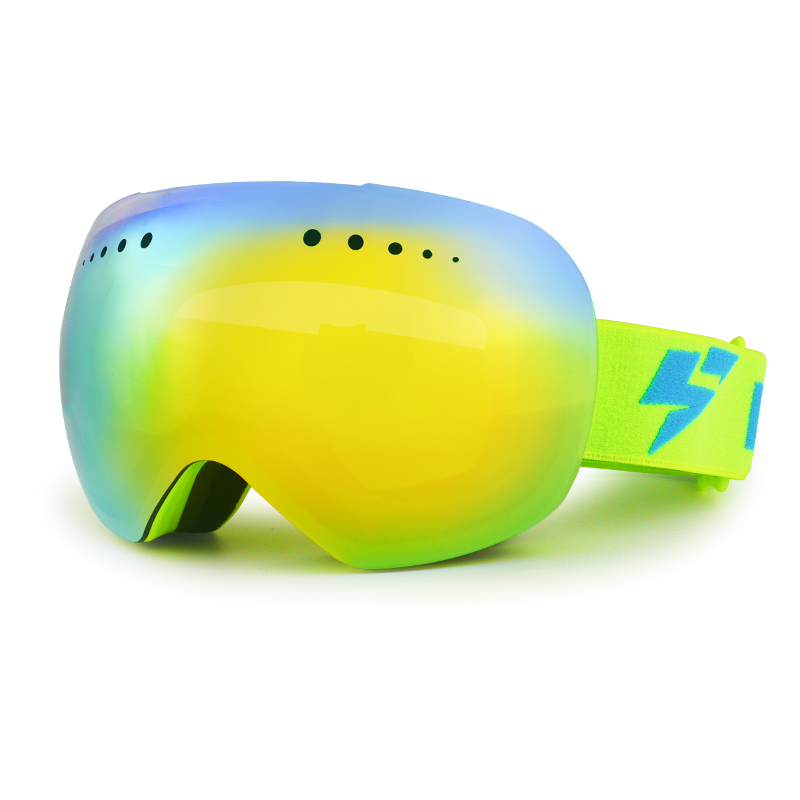 The outer lens is made with premium durable PC material. The optional mirrored or revo coating brings strong anti-scratch, impact resistant and anti-UV performance. The inner lens is made with Italian CA sheet with permanent anti-fog performance. NO fogging up when skiing or snowboarding.