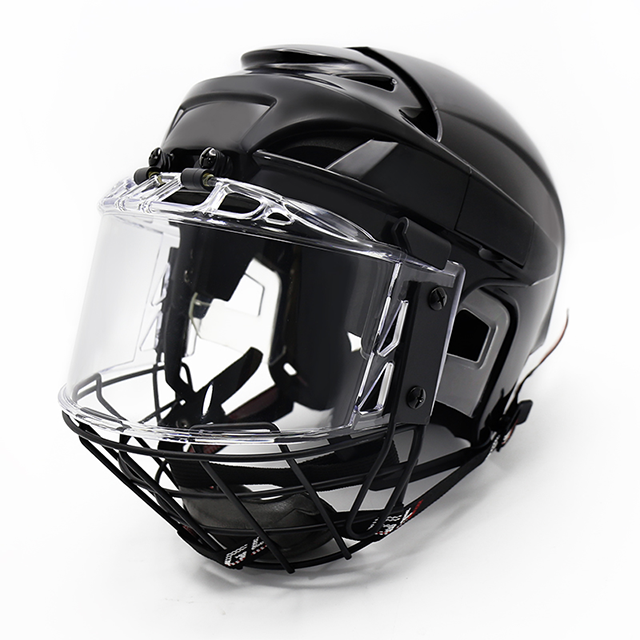 The Anti-Fog Full Face Ice Hockey Cage is a high-performance protective gear designed for hockey players seeking superior visibility and safety. Featuring a transparent face shield and a durable black metal cage, this helmet ensures maximum airflow while preventing fogging during intense gameplay. The adjustable strap system provides a secure fit, and the lightweight yet sturdy construction enhances comfort without compromising protection. Ideal for competitive and recreational players alike, this helmet combines advanced anti-fog technology with impact-resistant materials for optimal performance on the ice.