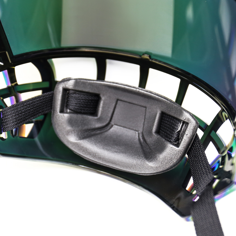 The cage is constructed from reinforced polycarbonate material engineered to withstand high-velocity puck impacts and stick contact. Polycarbonate is known for its excellent impact resistance—up to 250 times stronger than standard glass—helping reduce the risk of facial injuries during intense gameplay. This makes it ideal for junior-level competition where safety is critical.