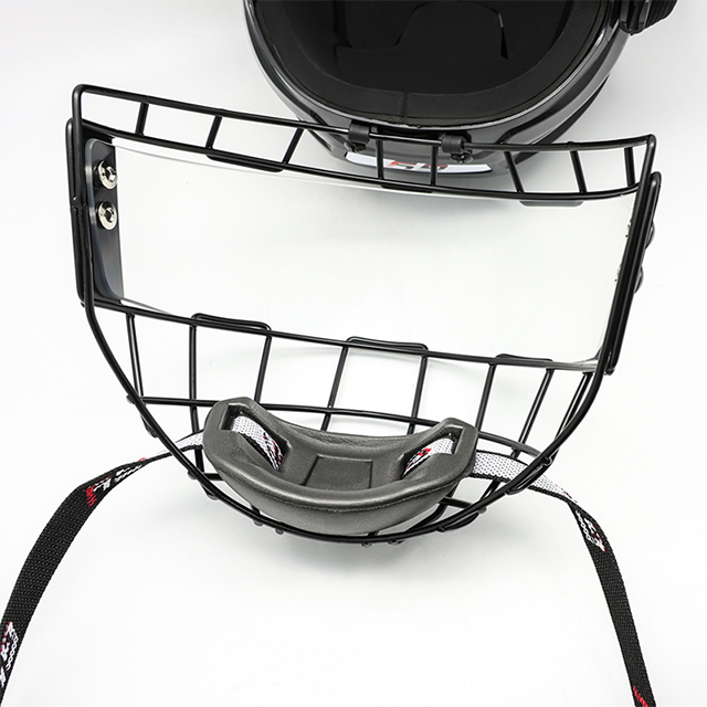 The open-frame design allows for excellent airflow while providing full facial protection against pucks and sticks.