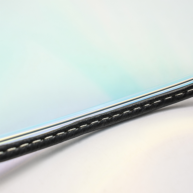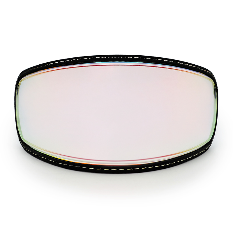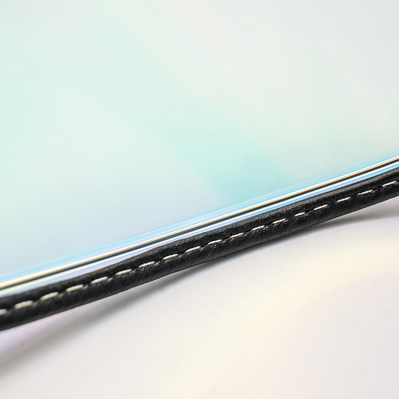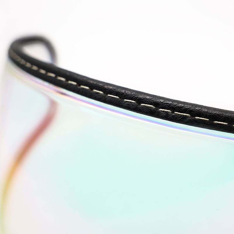 Genuine leather stitching along the frame enhances durability and elevates the visor’s aesthetic appeal.