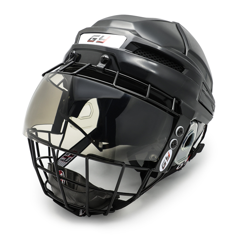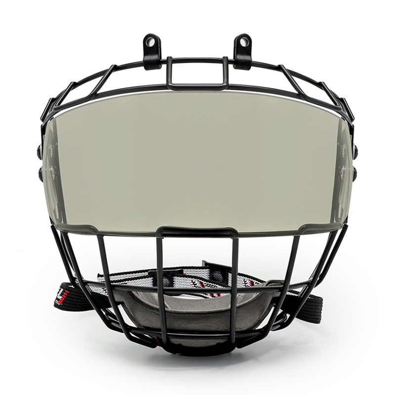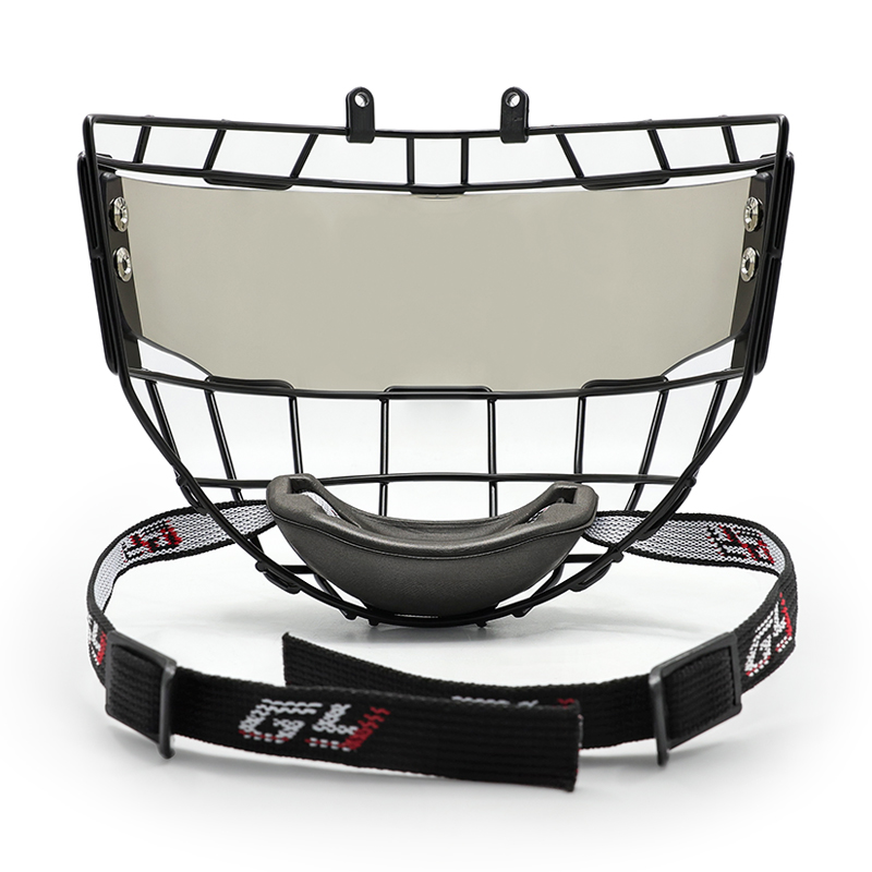 The combination of a smoke visor and steel wire cage delivers comprehensive facial protection. The visor shields the eyes from pucks, sticks, and glare, while the steel cage protects the lower face, teeth, and jaw. This integrated design enhances safety without restricting airflow or visibility, making it suitable for fast-paced junior hockey games.