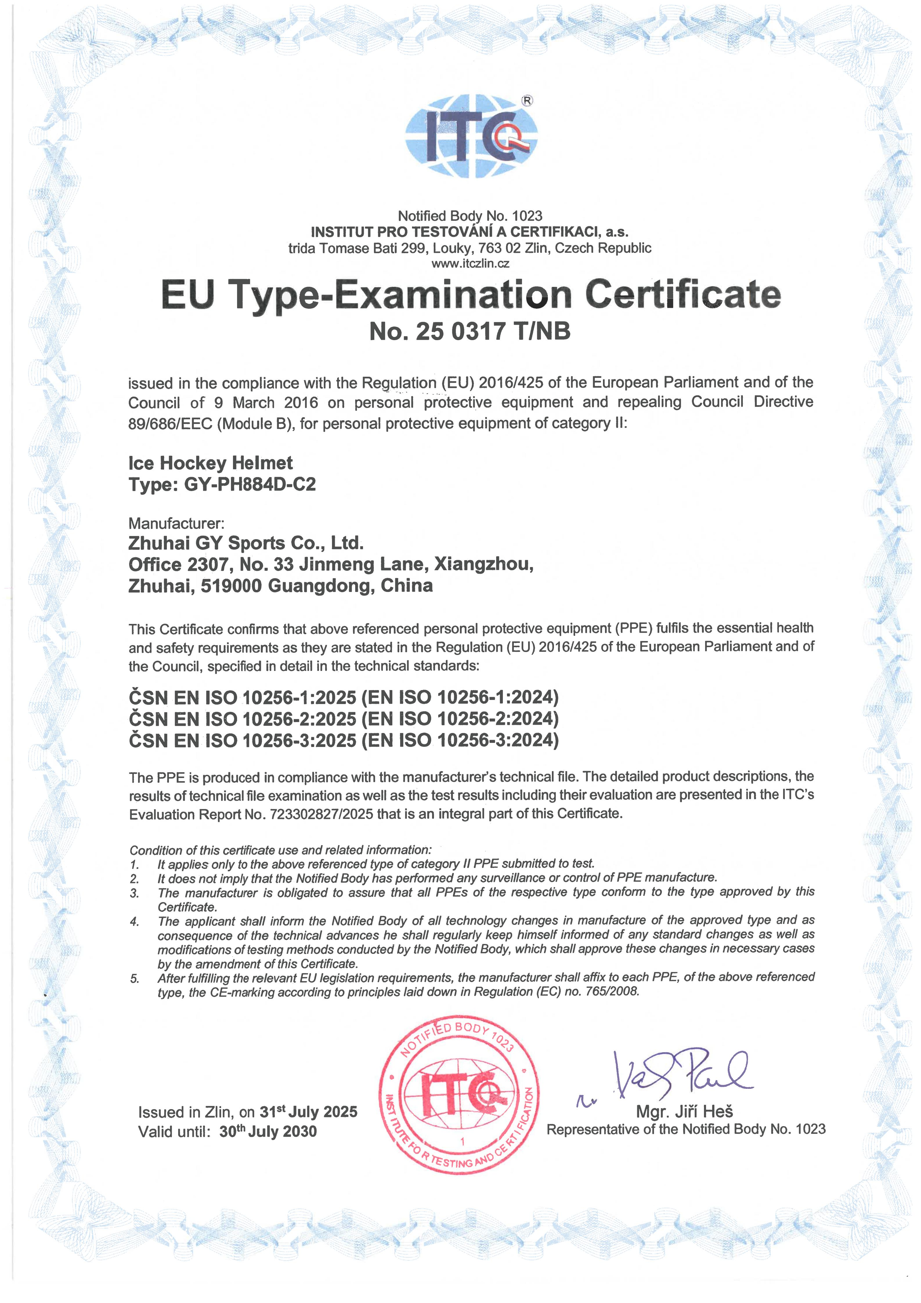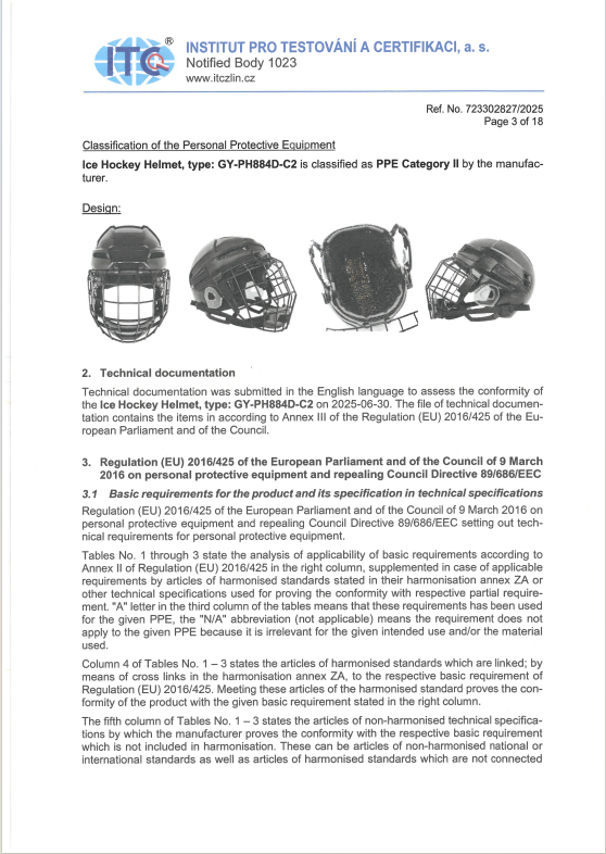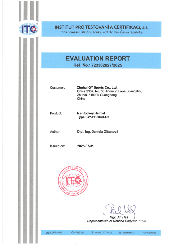 GY Optical, a premier manufacturer of professional ice hockey equipment and a subsidiary of GY Sports, is pleased to announce that our PH884D-C2 Ice Hockey Player Helmet has officially achieved CE certification, meeting the rigorous safety standards of the European market. This accomplishment underscores our dedication to providing high-quality, reliable protective gear for ice hockey players at all levels.CE Certification: Ensuring Safety & PerformanceThe CE mark confirms that the PH884D-C2 helmet complies with the European Union’s Personal Protective Equipment (PPE) Regulation (EU) 2016/425, guaranteeing exceptional impact resistance, structural integrity, and material safety. Key features of the certified helmet include: