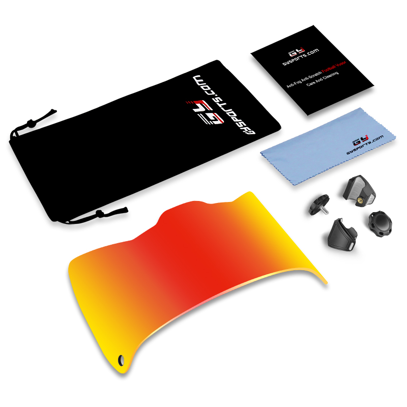 With its gradient orange-to-red lens and revo technology, the Senior New Sunrise Color Revo Red American Football Visor is sure to turn heads on the field. This unique look not only adds to your overall game-day appearance but also sets you apart from other players.