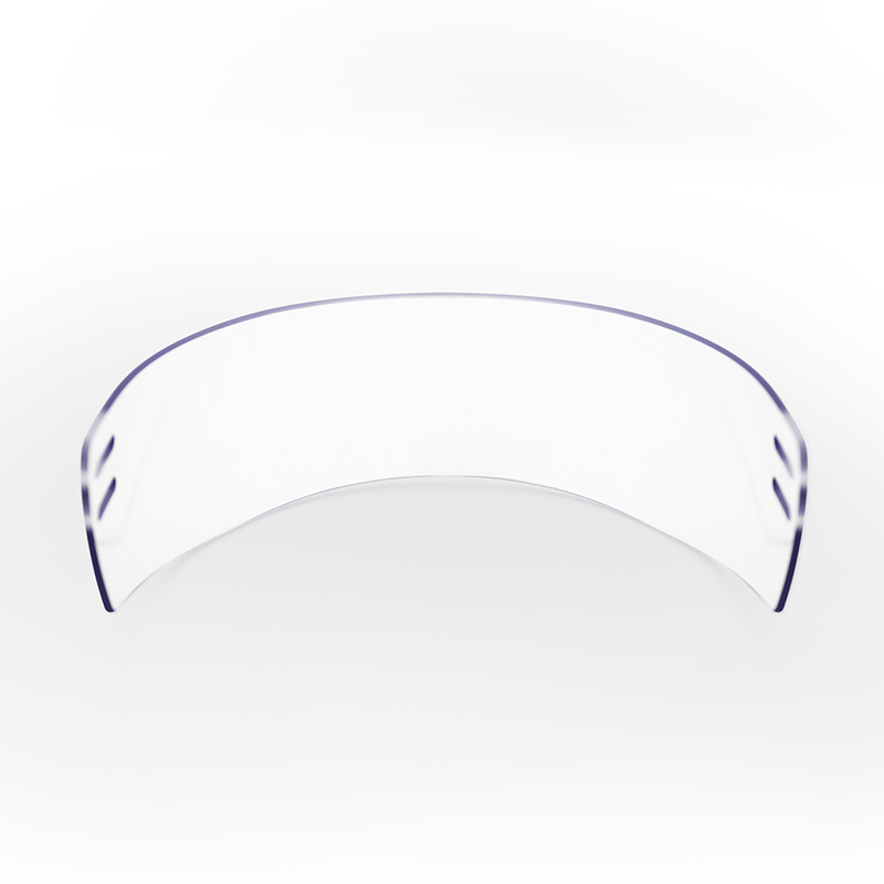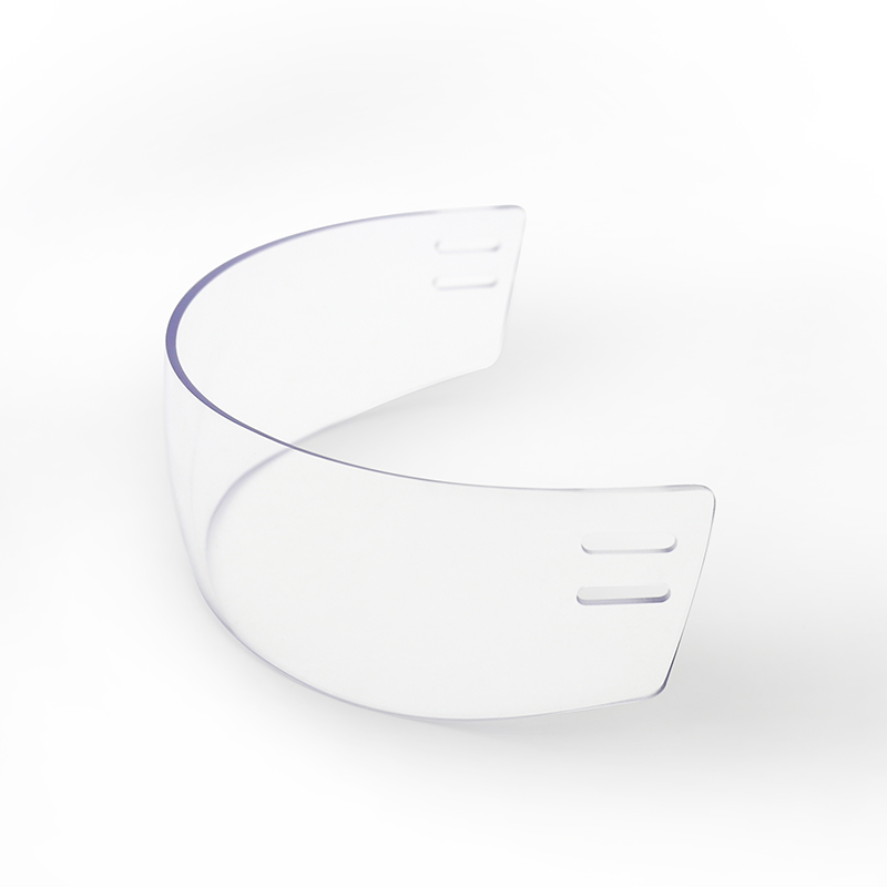 High impact resistant polycarbonate material that ensures our visors to provide superior protection from contact due to high sticks and deflected pucks.